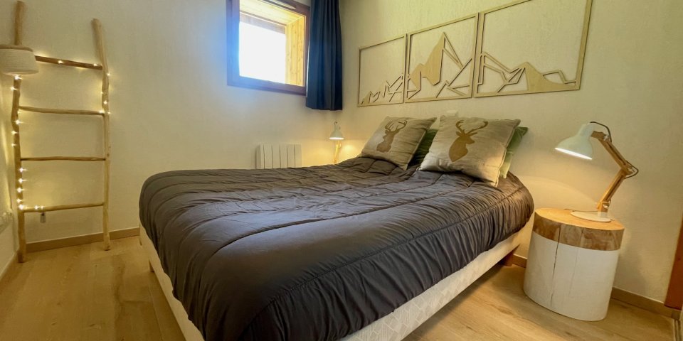 Côté jour, vous bénéficierez d'une belle pièce vie avec une cuisine ouverte sur le salon et une grande baie vitrée donnant sur une belle vue sur les montagnes. Côté nuit, la chambre dispose d'un lit double et la chambre des enfants de 4 lits à étage. La salle de bain et le WC sont séparés.